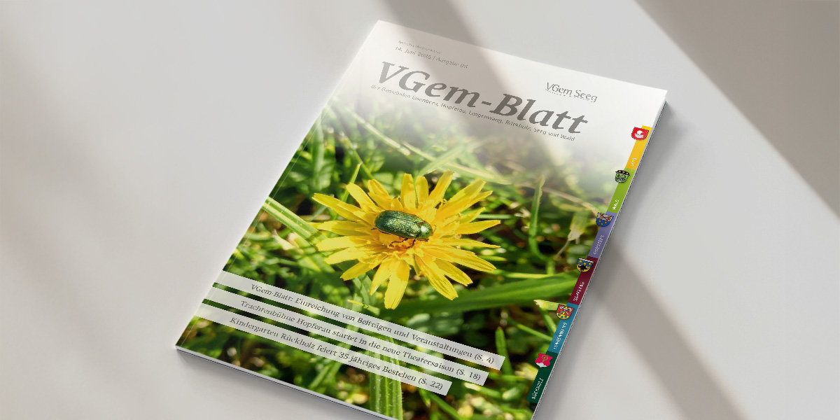 Für die Verwaltungsgemeinschaft Seeg (Ostallgäu) haben wir im Auftrag der Allgäuer Zeitung das Mitteilungsblatt „VGem-Blatt“ als Web2Print-Lösung entwickelt. Mit unserem System EO.Heimat ermöglicht das Web2Print-Tool eine einfache und effiziente Erstellung des Mitteilungsblatts, das regelmäßig die Bürger aus den sechs Gemeinden (Seeg, Rückholz, Lengenwang, Eisenberg, Hopferau und Wald) informiert.